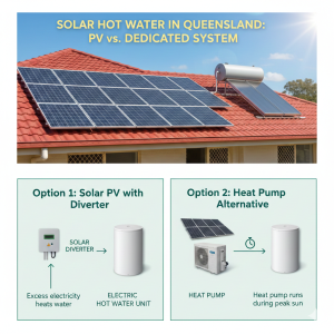 Many Logan People are confused about whether to install a dedicated solar hot water system or use their existing solar power (PV) panels to heat their water.